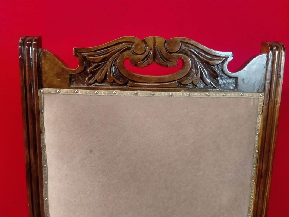 Carved oak antique upholstered nursing chair on castors