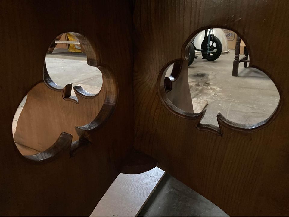 large vintage solid wood card/dining table with carved club design - perfect for man cave.