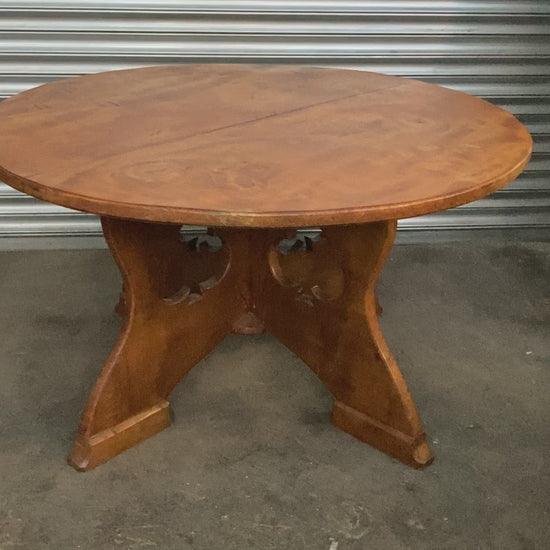large vintage solid wood card table with carved club design - man cave - dining table